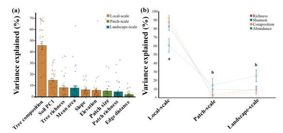针对土地利用变化加剧背景下景观异质性下降、生境破碎化等可能影响土壤真菌多样性的潜在问题,陆雅雯通过区域与全球尺度土壤采样研究,综合局域、斑块与景观尺度环境因子,揭示了土壤真菌多样性及群落组成的跨尺度驱动机制,为理解破碎化森林中土壤真菌多样性的形成机制提供了关键证据,并为景观尺度生态保护与生物多样性管理提供了重要科学依据。