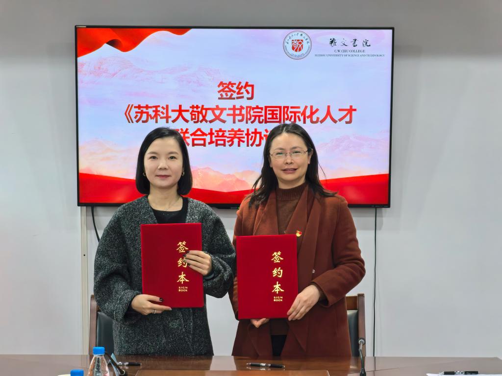 双方共同签订了《敬文书院与新东方教育科技集团党建共建合作协议》《苏科大敬文书院国际化人才联合培养协议》。仪式上还为“大学生生涯规划寒假训练营”开营揭牌。
