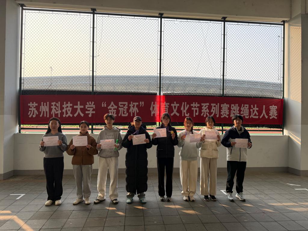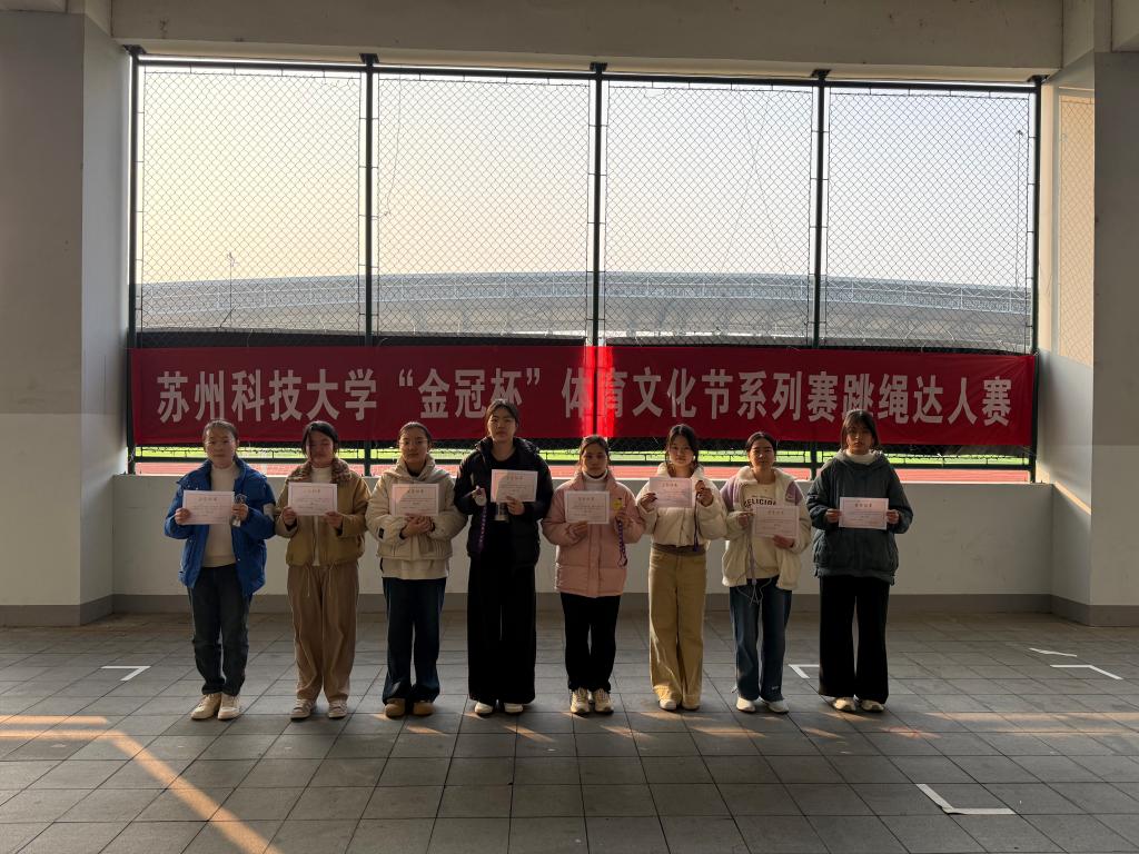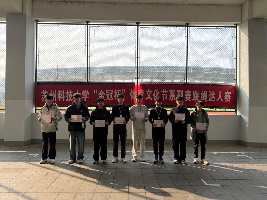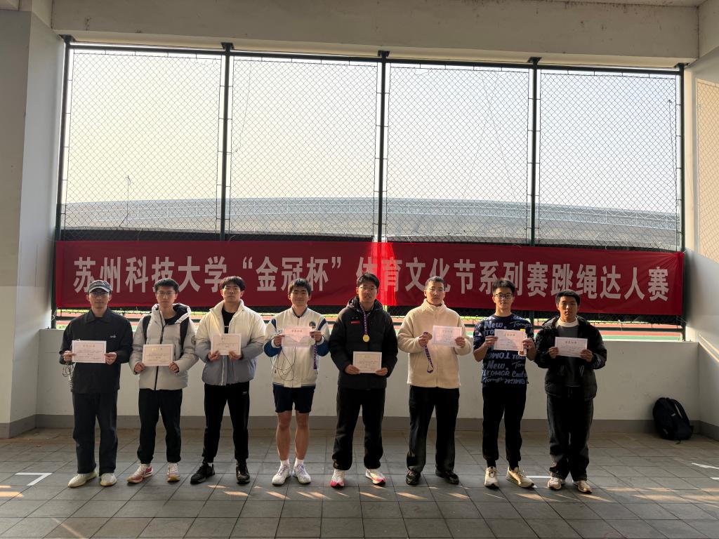 在跳绳达人赛中,外国语学院朱宇成获得男子组一分钟单摇冠军,土木工程学院王伟豪获得亚军,机械工程学院蔡卓航获得季军;商学院朱峰获得男子组一分钟双摇冠军,环境科学与工程学院赵智萌获得亚军,电子与信息工程学院陈林川获得季军;环境科学与工程学院吴婉君获得女子组一分钟单摇冠军,数学科学学院陈怡文获得亚军,土木工程学院李雨薇获得季军;材料科学与工程学院邹悦获得女子组一分钟双摇冠军,机械工程学院刘一诺获得亚军,文学院崔语倩获得季军。