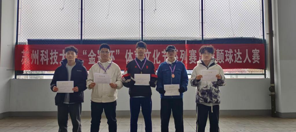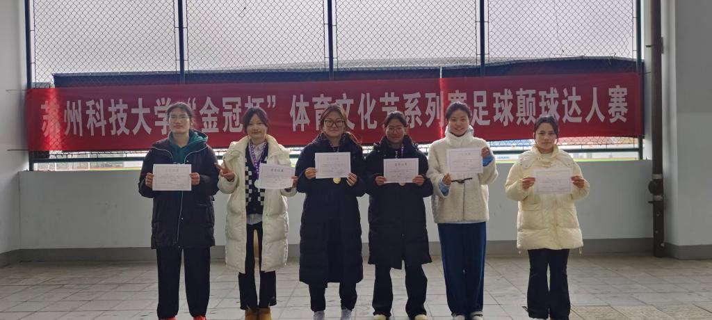 在足球颠球达人赛中,土木工程学院姚旺杰获得男子组冠军,物理科学与技术学院徐明豪获得亚军,文学院比拉力江·买买提江获得季军;环境科学与工程学院凌雪洁获得女子组冠军,马克思主义学院龙秀英获得亚军,商学院韩爽获得季军。