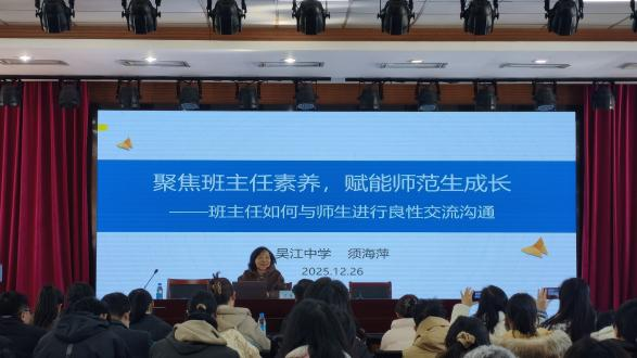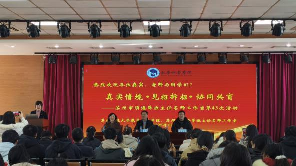 12月26日,数学科学学院联合苏州市须海萍班主任名师工作室在石湖校区举办班主任工作实战研讨活动,活动以“真实情境・见招拆招・协同共育”为主题。数学学院院长黄志刚、副院长孙桂荣,吴江中学校长韩保席,须海萍班主任名师工作室成员及学院师范类研究生、本科生共同参与。