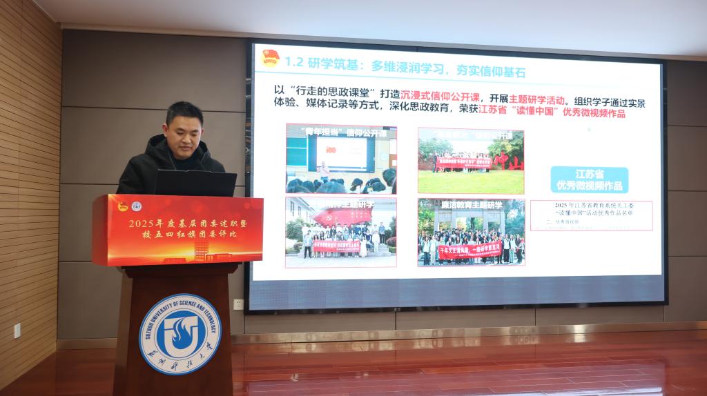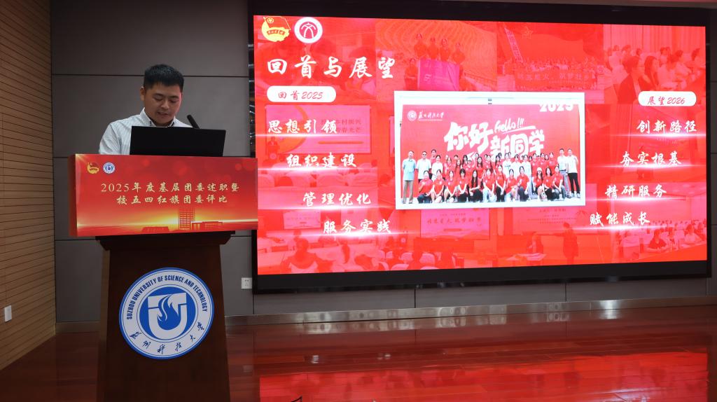 会上,20个学院团委书记根据《2025年度苏州科技大学共青团学院团委综合考评方案》要求,依次进行现场述职。各单位围绕思想引领、组织建设、成长服务和校园文化等述职评议考核重点内容,结合所在学院共青团工作特色亮点以及典型做法进行汇报展示,并总结成绩、查摆不足,提出优化改进措施。经评定,建筑与城市规划学院团委等5家学院团委获评“2025年度苏州科技大学五四红旗团委”。