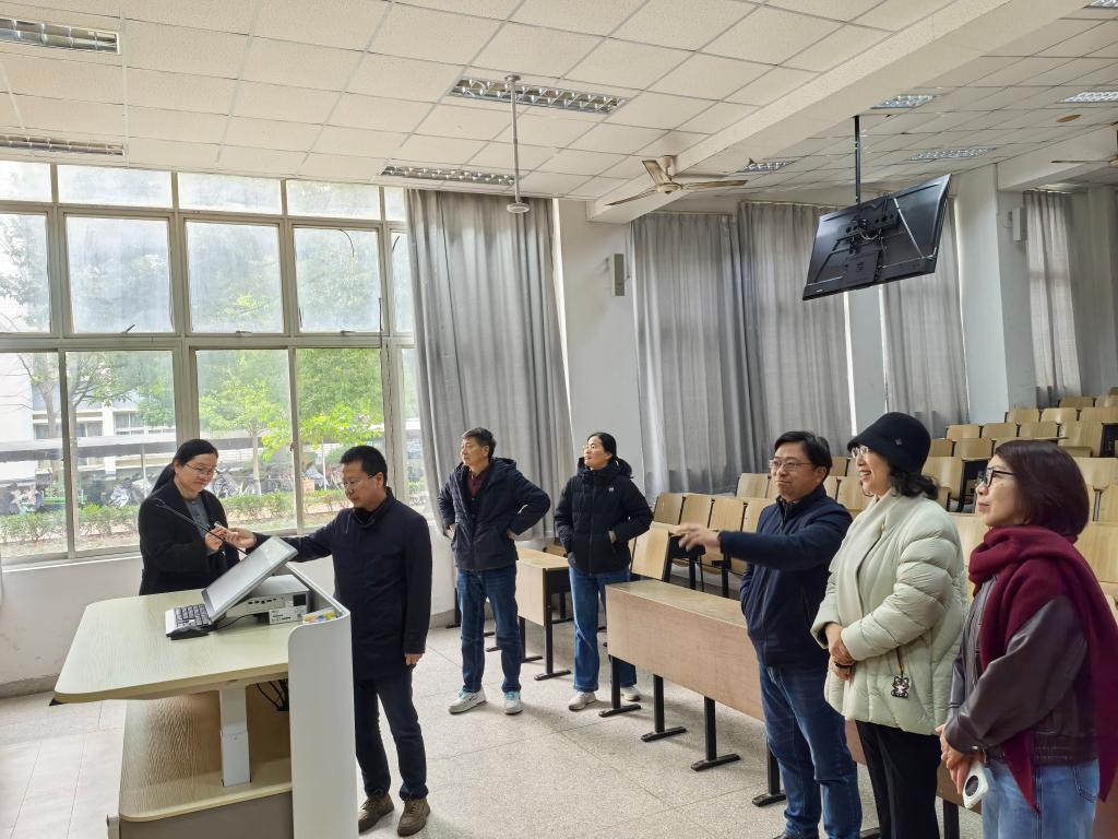 何湘江一行深入石湖、江枫、天平三个校区的教学楼,细致检查课堂教学设备、音响扩声系统、网络覆盖和电力保障等软硬件设施的调试与运行状态,以及教师休息室等教辅场地的环境状况,重点对寒假期间实施维修改造的各类教室进行查看。