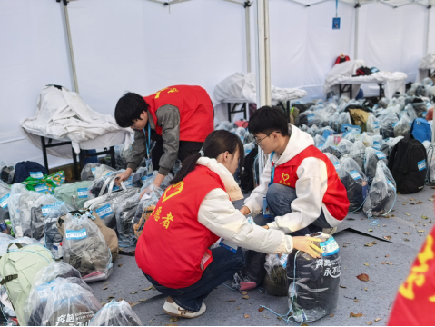 当日凌晨4时,志愿者们便奔赴各自岗位,投入紧张有序的工作。赛前,他们认真完成物资整理、信息核对、参赛包发放等任务;赛中,他们分布在赛道各点位,承担入场指引、存包检录、倒计时举牌、人墙隔离、取包更衣等多项工作。