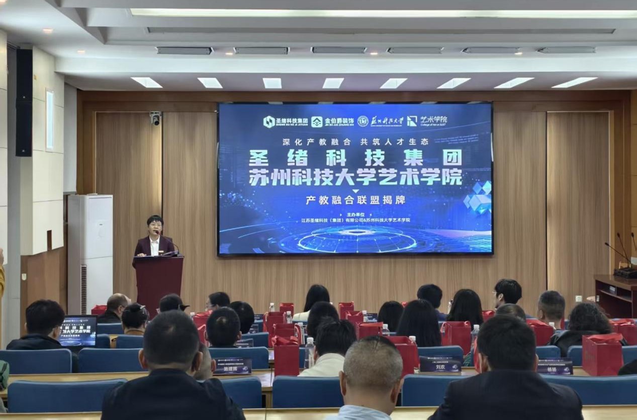 4月11日下午,由艺术学院与圣绪科技集团联合主办,我校数字化产业研究所协办的产教融合联盟揭牌仪式举行。圣绪科技集团董事长陈绪田、艺术学院党委书记林海,苏州大学与南通理工学院等兄弟高校教师,以及艺术学院部分教师代表参加活动。