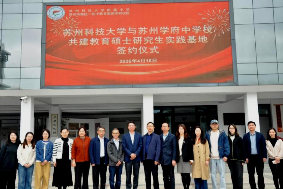 近日,我校与苏州学府中学校在该校举行共建教育硕士研究生实践基地与教育研究基地签约仪式。教育学院、师范学院院长陈卫东、副院长董波,苏州学府中学校校长朱文伟、副校长顾云龙、副校长戴大意等出席活动。