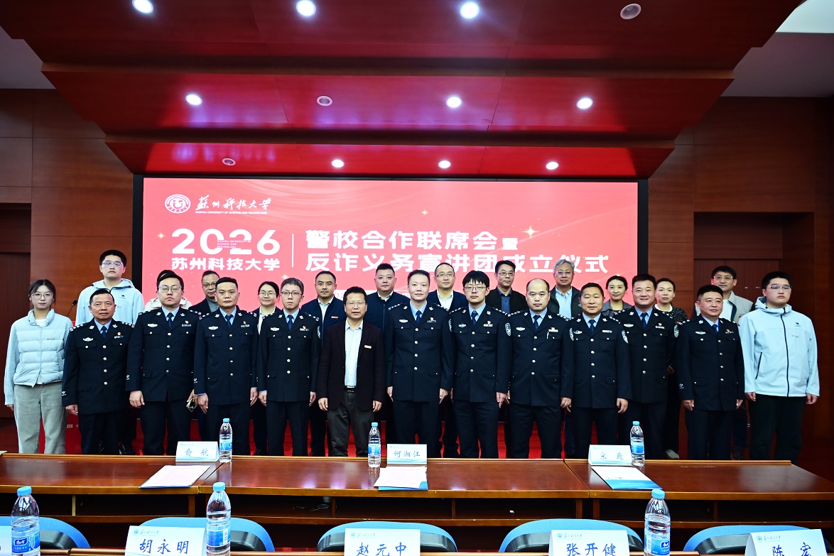4月22日,我校与苏州市公安局刑侦支队、高新区公安局举行警校合作联席会暨反诈义务宣讲团成立仪式。党委常委、副校长何湘江,苏州市公安局刑侦支队副支队长俞航、高新区公安局副局长宋巍等出席活动。仪式由保卫处处长梅平平主持。