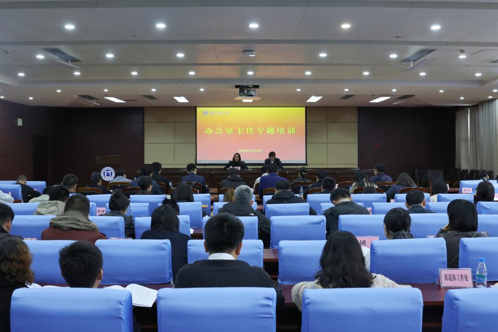 4月23日至24日,全校办公室主任业务培训班在行政楼一楼报告厅顺利举行。校党委副书记洪晔,党委常委、副校长何湘江出席培训班,党办、校办、保密办主任肖科学,党委组织部副部长刘建峰分别主持开班仪式与结业仪式。各职能部门、教辅单位综合科科长,各教学单位党政办主任及辅导员参加培训。
