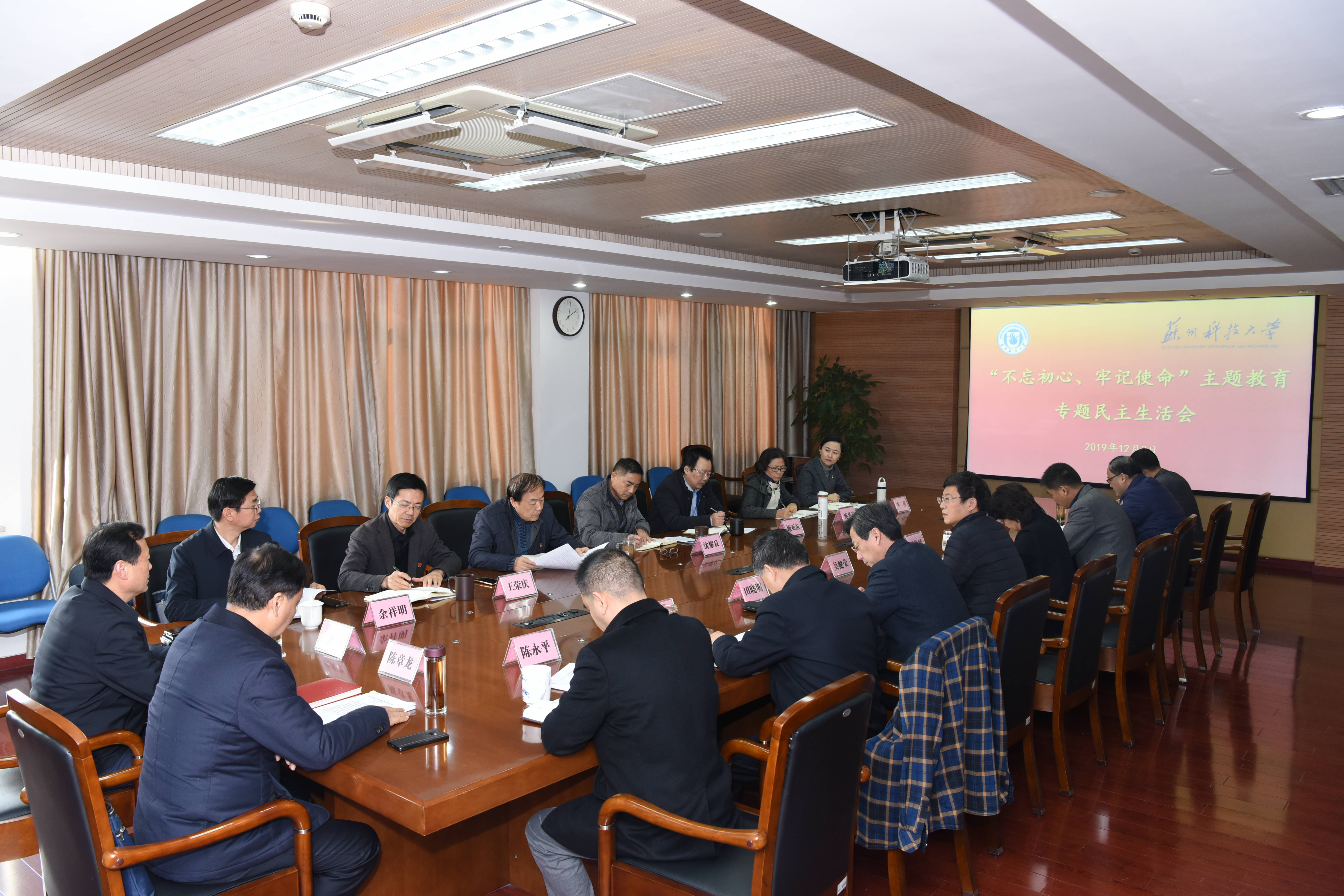 12月3日下午,校党委领导班子“不忘初心、牢记使命”主题教育专题民主生活会在行政楼四楼会议室召开,会议由校党委书记张庆奎主持,省委主题教育第十巡回指导组组长陈章龙,组员余祥明、沈广达同志莅临指导。