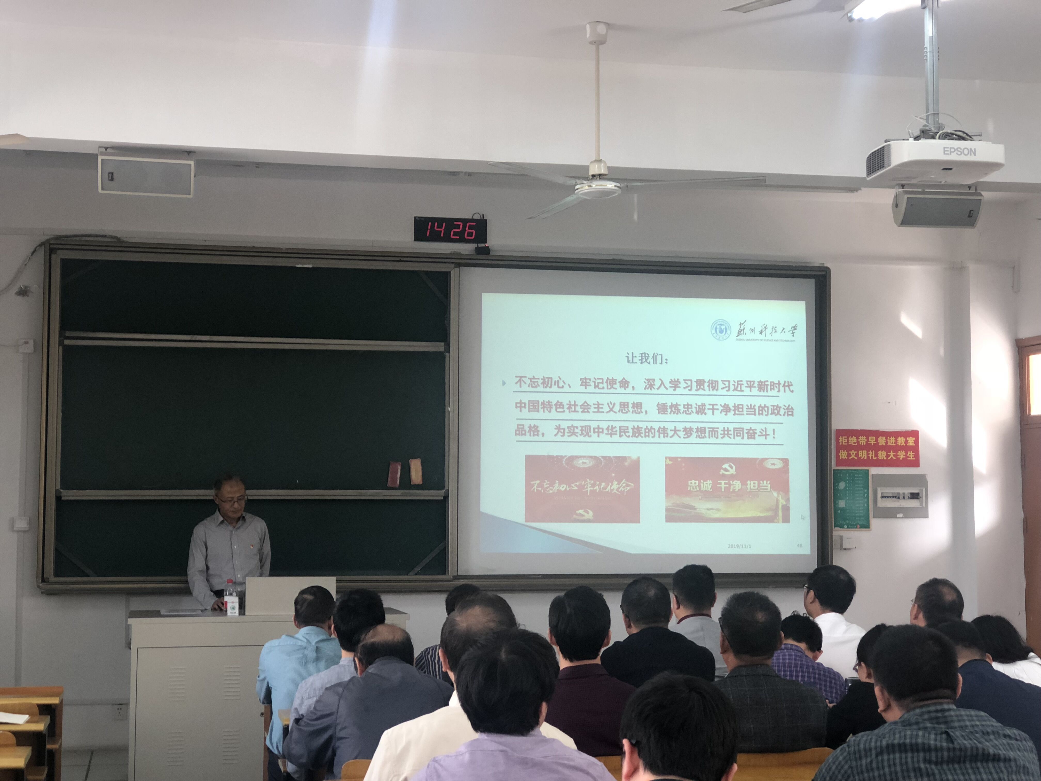 根据学校关于“不忘初心、牢记使命”主题教育工作的安排,环境学院党委书记费忠民结合主题教育调研成果,于11月1日下午在C6-312为学院全体教职工党员上了一堂题为《加强学院党支部建设,促进教学科研新发展》的党课。