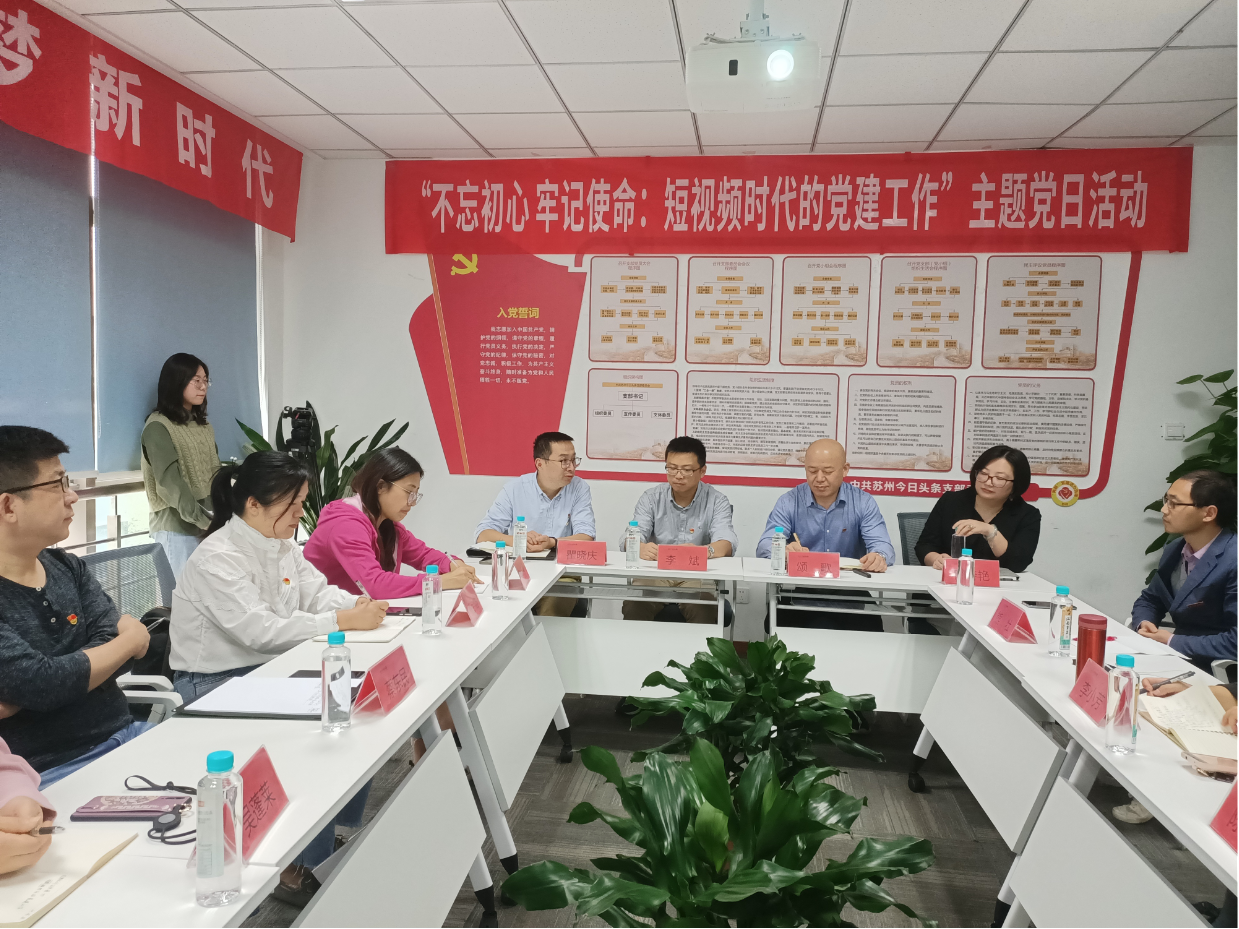 10月25日,文学院教工第二支部赴苏州今日头条信息科技有限公司(以下简称苏州头条)举行结对共建暨“不忘初心、牢记使命:短视频时代的党建工作”主题党日活动。活动由苏州头条党支部书记颂歌主持。