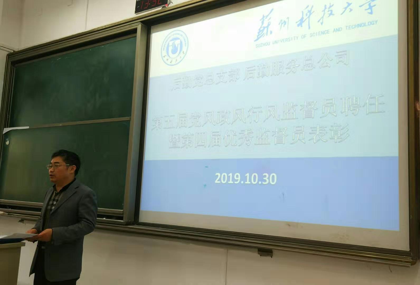为深入开展“不忘初心、牢记使命”主题教育,进一步推进后勤党风政风行风建设,提升管理效能和服务水平,10月30日下午,后勤服务总公司组织召开了第五届后勤党风政风行风监督员聘任暨第四届优秀监督员表彰会。