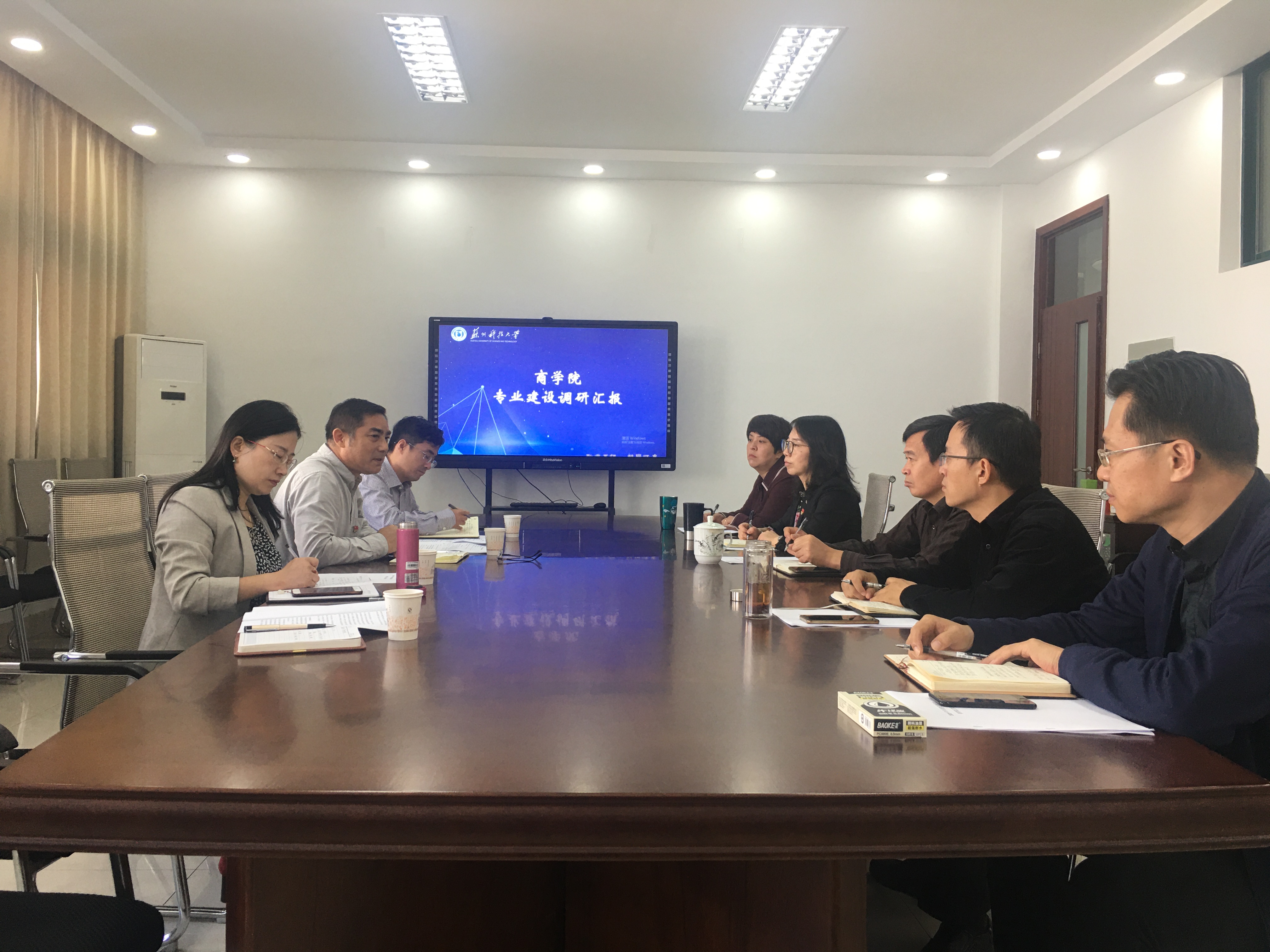为落实“不忘初心、牢记使命”主题教育相关工作部署,扎实开展好专题调研活动,进一步推进学校专业建设,近日,副校长沈耀良带队赴建筑与城市规划学院、土木工程学院、电子与信息工程学院、商学院、马克思主义学院、社会发展与公共管理学院、数理学院、艺术学院、体育部等教学单位开展专业建设专项调研,践行初心使命,帮助破解专业建设难题。教务处副处长(主持工作)范凌云、副处长刘志强、人事处副处长宋红英陪同调研。各学院班子成员、系(教研室)主任参加了座谈会。
